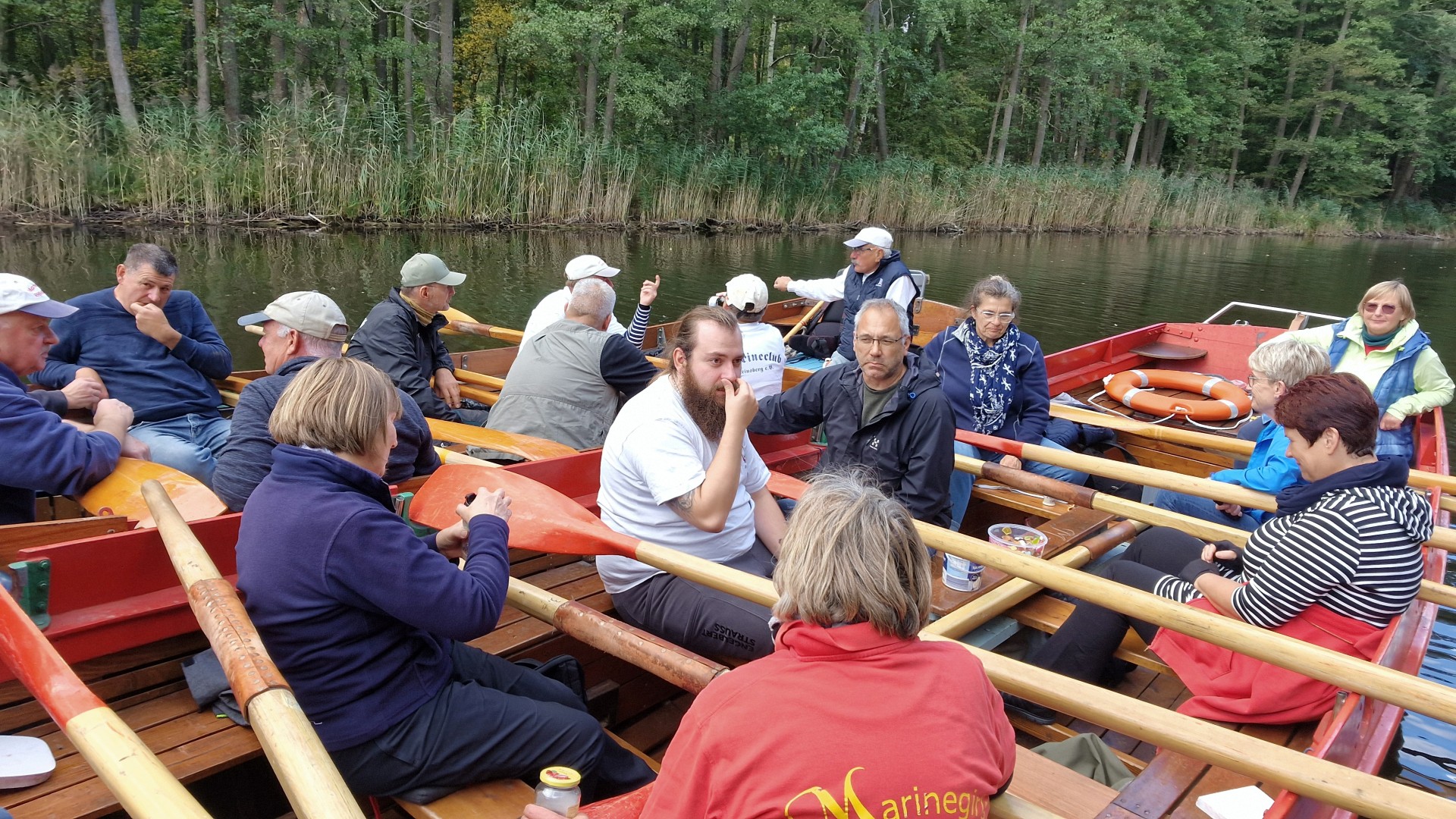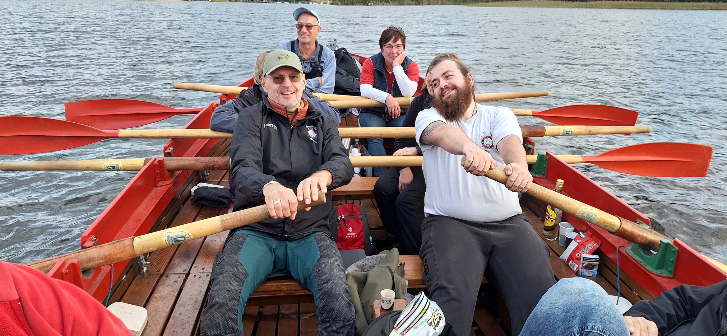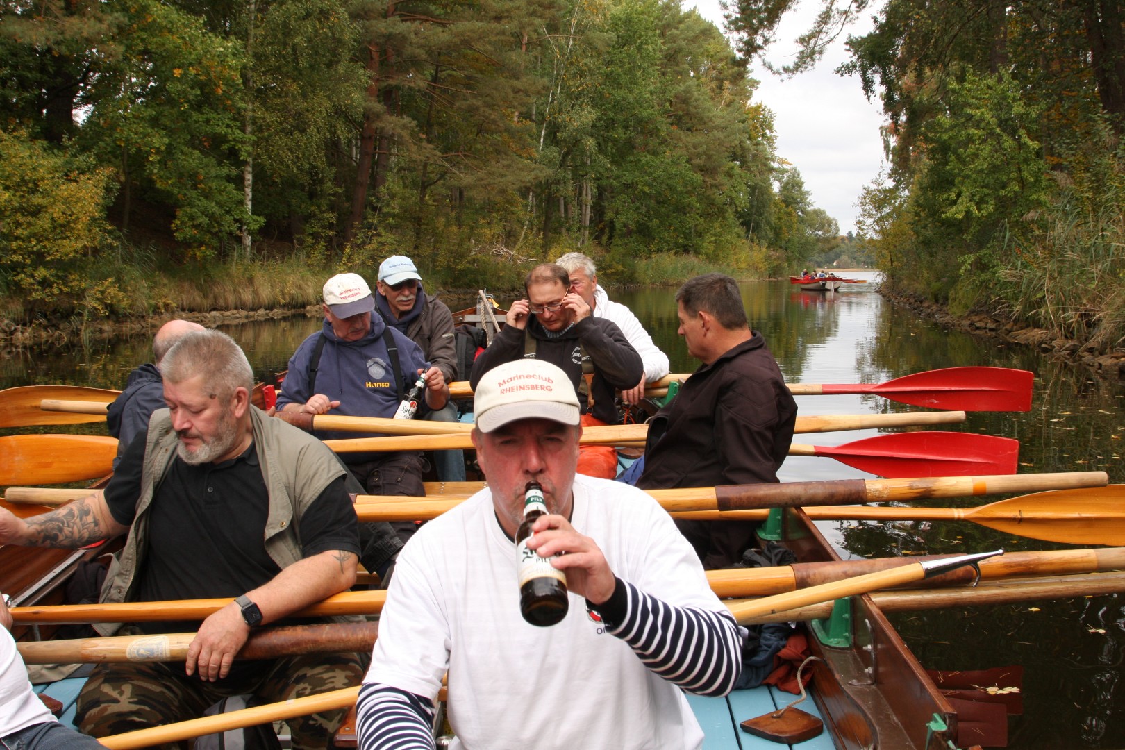 Das Abrudern 2025 konnte mit 2 voll besetzten Kuttern stattfinden. Es wehte eine steife Brise, so dass wir auf dem Rheinsberger See wegen des hohen Seegangs eine Pause machen und in Hohenelse anlegen mussten. Dann ging es aber ohne Stopp weiter direkt bis zum Schlaborn-Kanal. Zum Mittag wurden wir wieder bei Lothar erwartet und vollgefuttert wurde der Rückweg angetreten. Nach einem kleinen Gerangel vor der Schlaborn-Brücke mit der Fahrgastschifffahrt machten wir noch einen Bade-Stopp an der Remus-Insel. Inzwischen wieder hungrig fuhren wir noch nach Warenthin zu Familie Mischke zu Kaffee und Kuchen und Bockwurst, ehe wir den Heimweg antraten.