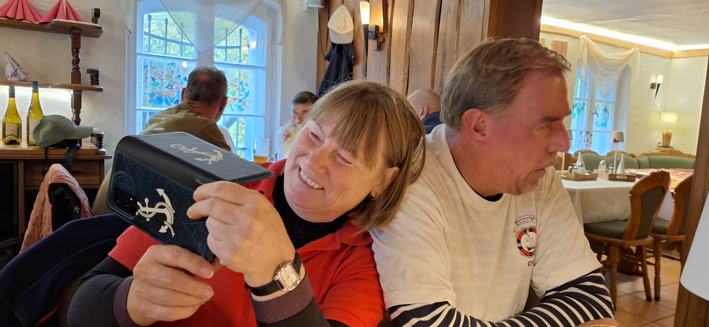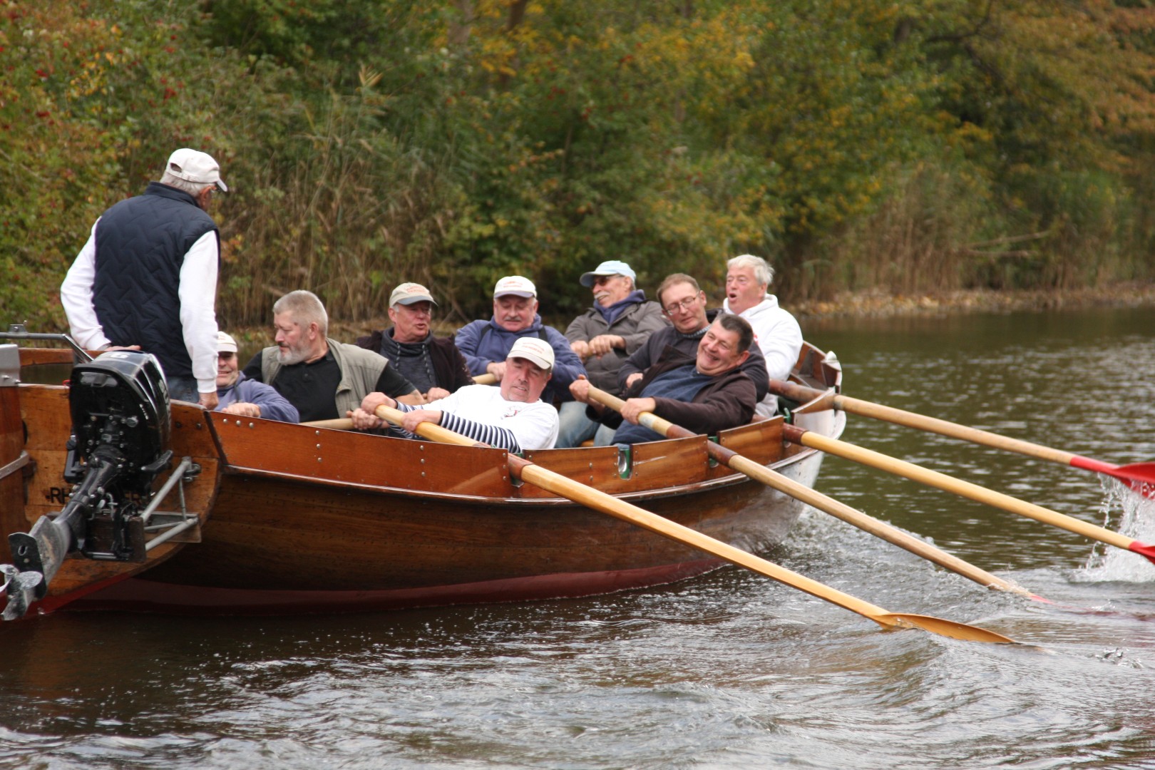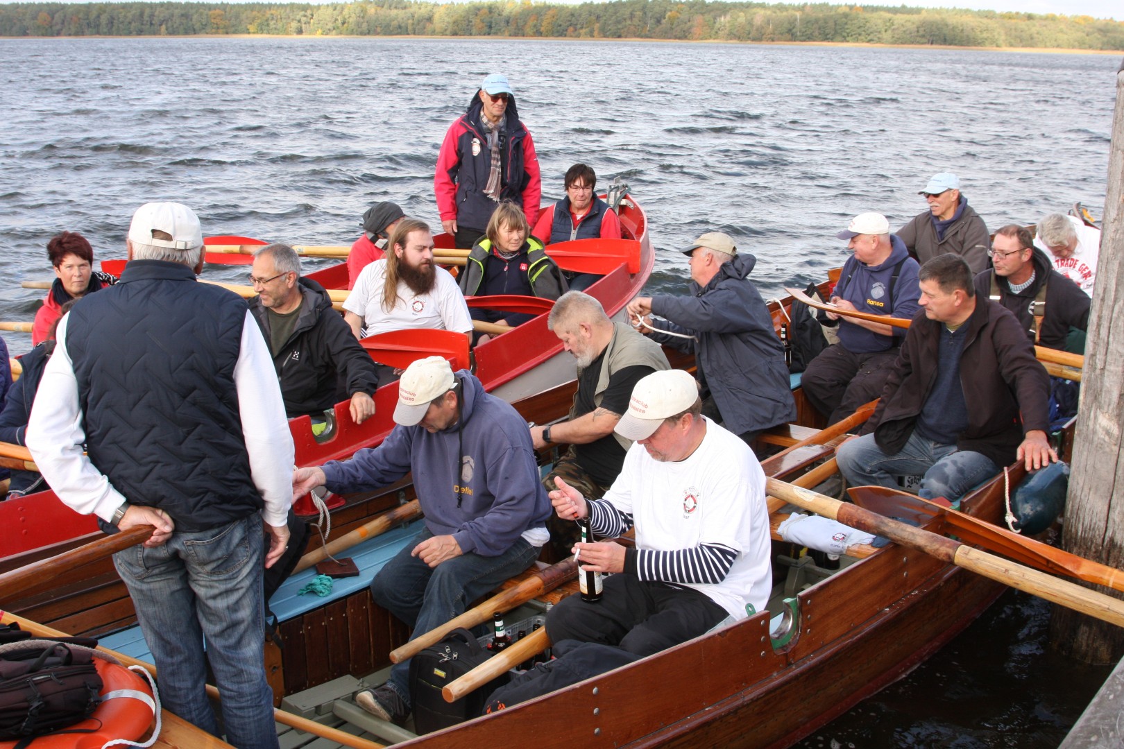 Das Abrudern 2025 konnte mit 2 voll besetzten Kuttern stattfinden. Es wehte eine steife Brise, so dass wir auf dem Rheinsberger See wegen des hohen Seegangs eine Pause machen und in Hohenelse anlegen mussten. Dann ging es aber ohne Stopp weiter direkt bis zum Schlaborn-Kanal. Zum Mittag wurden wir wieder bei Lothar erwartet und vollgefuttert wurde der Rückweg angetreten. Nach einem kleinen Gerangel vor der Schlaborn-Brücke mit der Fahrgastschifffahrt machten wir noch einen Bade-Stopp an der Remus-Insel. Inzwischen wieder hungrig fuhren wir noch nach Warenthin zu Familie Mischke zu Kaffee und Kuchen und Bockwurst, ehe wir den Heimweg antraten.